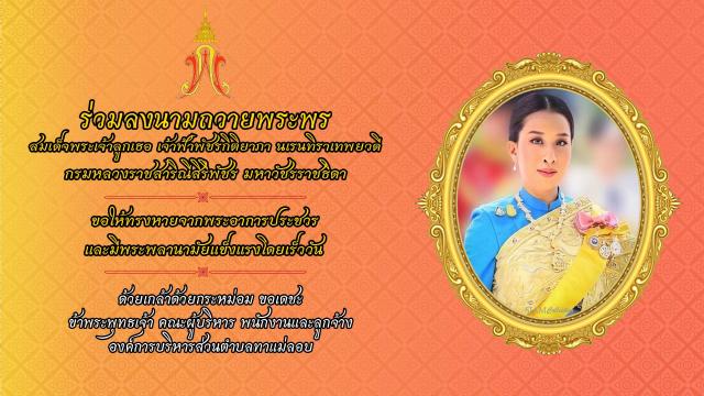 ขอเชิญชวนประชาชนร่วมลงนามถวายพระพร สมเด็จพระเจ้าลูกเธอ เจ้าฟ้าพัชรกิติยาภา นเรนทิราเทพยวดี กรมหลวงราชสาริณีสิริพัชร มหาวัชรราชธิดา