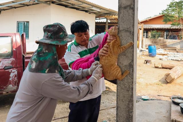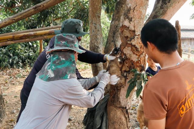 วันที่ 2 เมษายน 2568 งานสาธารณสุข สำนักปลัด องค์การบริหารส่วนตำบลทาแม่ลอบ ออกให้บริการฉีดวัคซีนป้องกันโรคพิษสุนัขบ้า ในสัตว์เลี้ยงของประชาชน พื้นที่หมู่ 2 บ้านต้นผึ้ง และหมู่ 3 บ้านห้วยเหี๊ยะ ตำบลทาแม่ลอบ ตามโครงการป้องกันและควบคุมโรคพิษสุนัขบ้า ประจำปีงบประมาณ 2568 ภายใต้โครงการ สัตว์ปลอดโรค คนปลอดภัย จากโรคพิษสุนัขบ้า ตามพระปณิธาน ศาสตราจารย์ ดร.สมเด็จพระเจ้าลูกเธอ เจ้าฟ้าจุฬาภรณ์วลัยลักษณ์ อัครราชกุมารี ระหว่างวันที่ 1-4 เมษายน 2568
