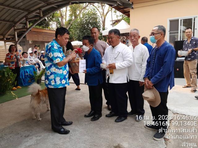 ร่วมเดินขบวนแห่พิธีสรงน้ำพระธาตุเจดีย์ศรีหริภุญชัย วัดทากาศ และร่วมกิจกรรมรดน้ำดำหัว นายประกอบ ยอดยา นายอำเภอแม่ทา
