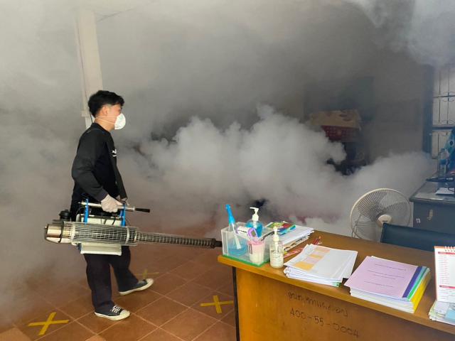 พ่นหมอกควันป้องกันโรคไข้เลือดออกในบริเวณสถานศึกษา