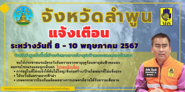 "ผู้ว่าลำพูนแจ้งเตือนประชาชนเฝ้าระวังภัยพายุฤดูร้อน"