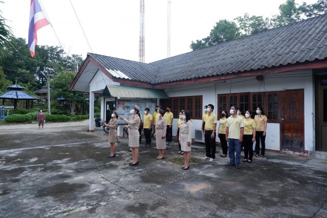 • หน้าแรก > • อัลบั้มภาพกิจกรรม > พิธีเชิญธงชาติขึ้นสู่ยอดเสา และร่วมกันยืนตรงร้องเพลงชาติ