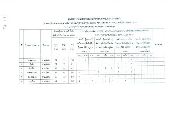 แบบรายงานฐานข้อมูลฐานข้อมูลจำนวนผู้สูงอายุที่มีภาวะพึ่งพิงขององค์กรปกครองส่วนท้องถิ่น (ตามแบบประเมินความสามารถในการดำเนินกิจวัตรประจำวัน Barthel ADL index ของผู้สูงอายุ) ประจำปีงบประมาณ 2564