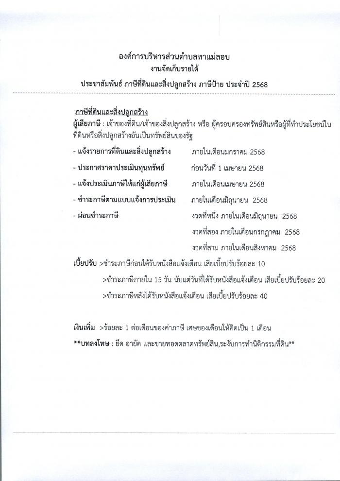ประชาสัมพันธ์ ภาษีที่ดินและสิ่งปลูกสร้าง ภาษีป้าย ประจำปี 2568
