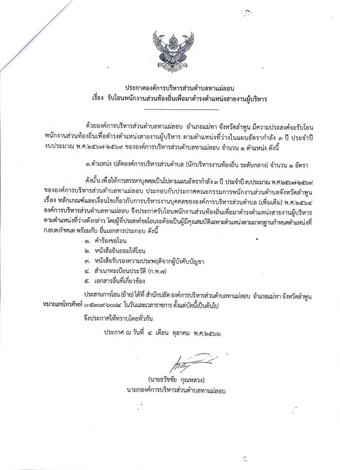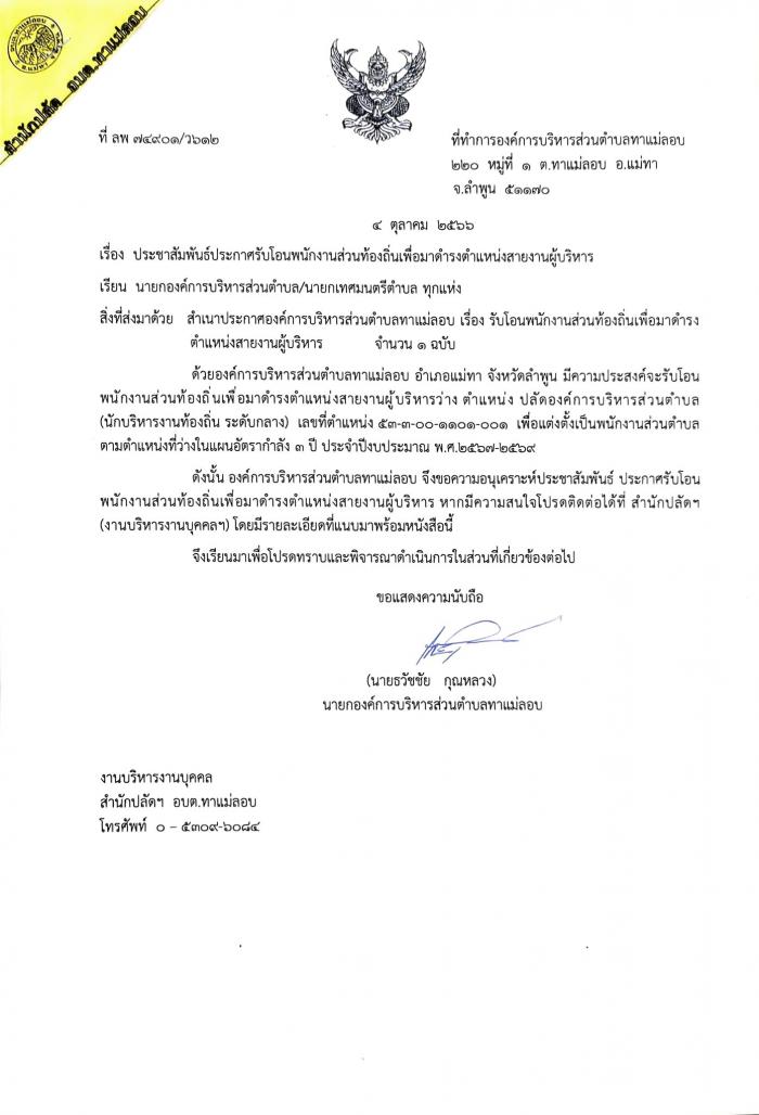 ประชาสัมพันธ์ประกาศรับโอนพนักงานส่วนท้องถิ่นเพื่อมาดำรงตำแหน่งสายงานผู้บริหาร