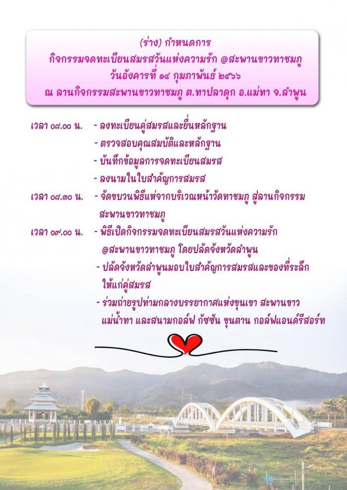 อำเภอแม่ทาจัดกิจกรรมจดทะเบียนสมรสวันแห่งความรัก @สะพานขาวทาชมภู