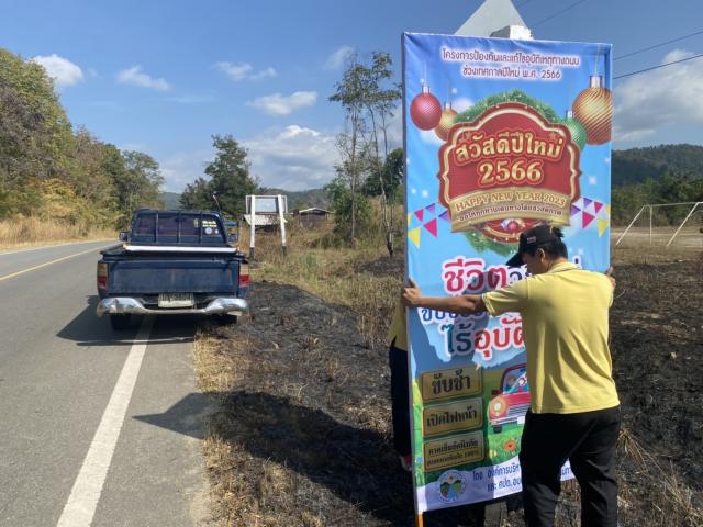 ติดตั้งป้ายรณรงค์ขับขี่ปลอดภัยช่วงเทศกาลวันปีใหม่ 2566