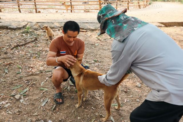 วันที่ 2 เมษายน 2568 งานสาธารณสุข สำนักปลัด องค์การบริหารส่วนตำบลทาแม่ลอบ ออกให้บริการฉีดวัคซีนป้องกันโรคพิษสุนัขบ้า ในสัตว์เลี้ยงของประชาชน พื้นที่หมู่ 2 บ้านต้นผึ้ง และหมู่ 3 บ้านห้วยเหี๊ยะ ตำบลทาแม่ลอบ ตามโครงการป้องกันและควบคุมโรคพิษสุนัขบ้า ประจำปีงบประมาณ 2568 ภายใต้โครงการ สัตว์ปลอดโรค คนปลอดภัย จากโรคพิษสุนัขบ้า ตามพระปณิธาน ศาสตราจารย์ ดร.สมเด็จพระเจ้าลูกเธอ เจ้าฟ้าจุฬาภรณ์วลัยลักษณ์ อัครราชกุมารี ระหว่างวันที่ 1-4 เมษายน 2568