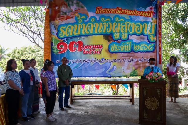 เมื่อวันที่ 13 เมษายน 2568 นายธวัชชัย กุณหลวง นายกองค์การบริหารส่วนตำบลทาแม่ลอบ พร้อมด้วย คณะผู้บริหาร สมาชิกสภาองค์การบริหารส่วนตำบล ข้าราชการ พนักงาน และลูกจ้าง ร่วมกับประชาชนในเขตพื้นที่ตำบลทาแม่ลอบ ได้เข้าร่วมโครงการจัดงานประเพณี รดน้ำดำหัวผู้สูงอายุ ประจำปี 2568 เพื่อเป็นการอนุรักษ์ไว้ซึ่งประเพณีสงกรานต์ล้านนา และสร้างความสัมพันธ์อันดีของสังคมผู้สูงอายุ รวมทั้งได้มีการมอบรางวัลปราชญ์ชาวบ้านให้กับผู้สูงอายุผู้เป็นภูมิปัญญาชาวบ้าน และนำภูมิปัญญามาใช้ประโยชน์ในการดำรงชีวิตจนประสบผลสำเร็จ สามารถถ่ายทอด เชื่อมโยงคุณค่าของอดีตกับปัจจุบันได้อย่างเหมาะสม ณ สำนักงานองค์การบริหารส่วนตำบลทาแม่ลอบ อ.แม่ทา จ.ลำพูน