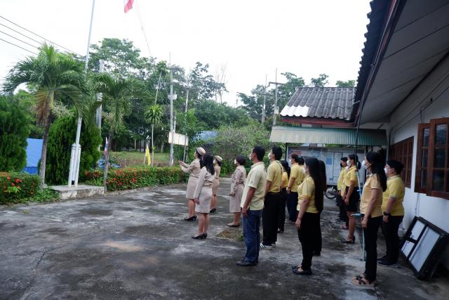 • หน้าแรก > • อัลบั้มภาพกิจกรรม > พิธีเชิญธงชาติขึ้นสู่ยอดเสา และร่วมกันยืนตรงร้องเพลงชาติ