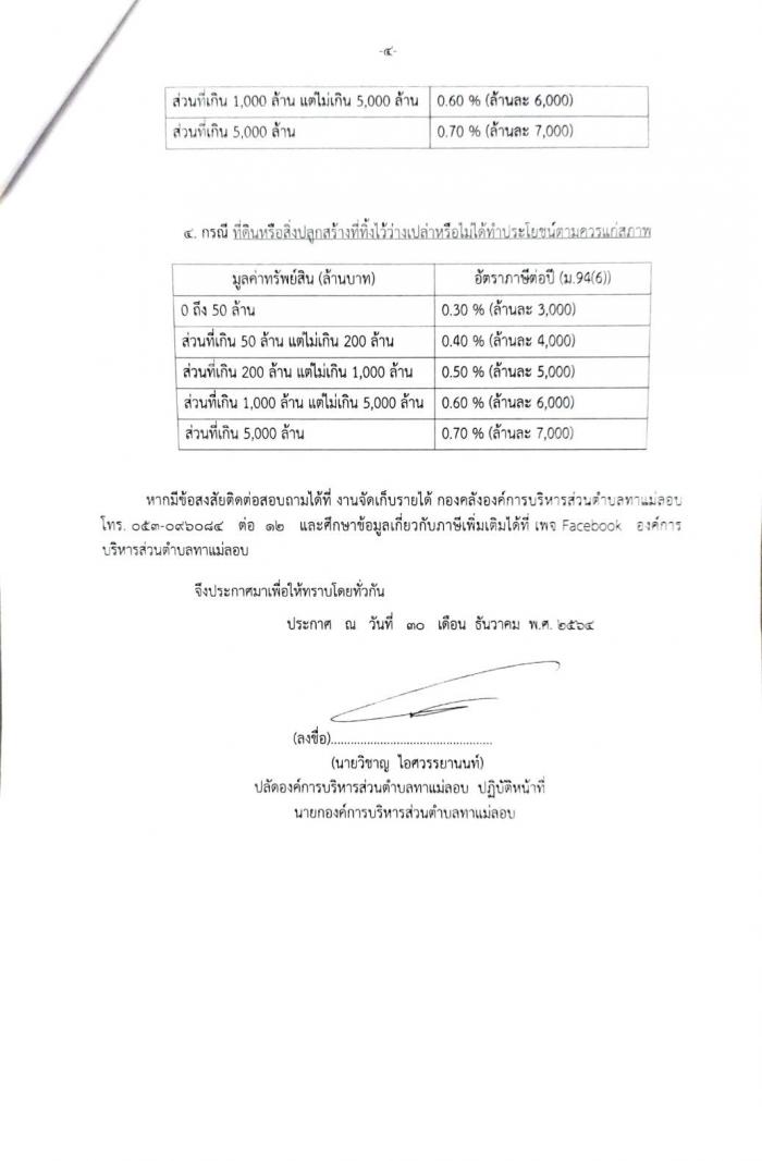 ประชาสัมพันธ์กฎกระทรวงกำหนดอัตราภาษีที่ดินและสิ่งปลูกสร้าง พ.ศ. 2565