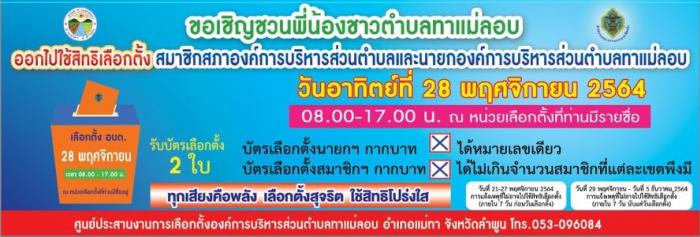 ประชาสัมพันธ์องค์การบริหารส่วนตำบลทาแม่ลอบ (งานเลือกตั้ง)