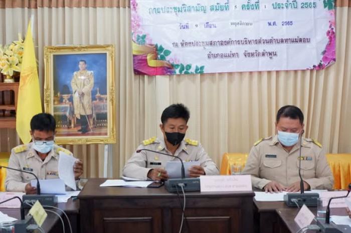 วันพุธที่ 9 พฤศจิกายน 2565 นายปุด แก้วเงิน ประธานสภาองค์การบริหารส่วนตำบลทาแม่ลอบ เป็นประธานการประชุมสภาองค์การบริหารส่วนตำบลทาแม่ลอบ สมัยวิสามัญ สมัยที่ 5 ครั้งที่ 1 ประจำปี พ.ศ.2565 ณ ห้องประชุมสภาองค์การบริหารส่วนตำบลทาแม่ลอบ อำเภอแม่ทา จังหวัดลำพูน