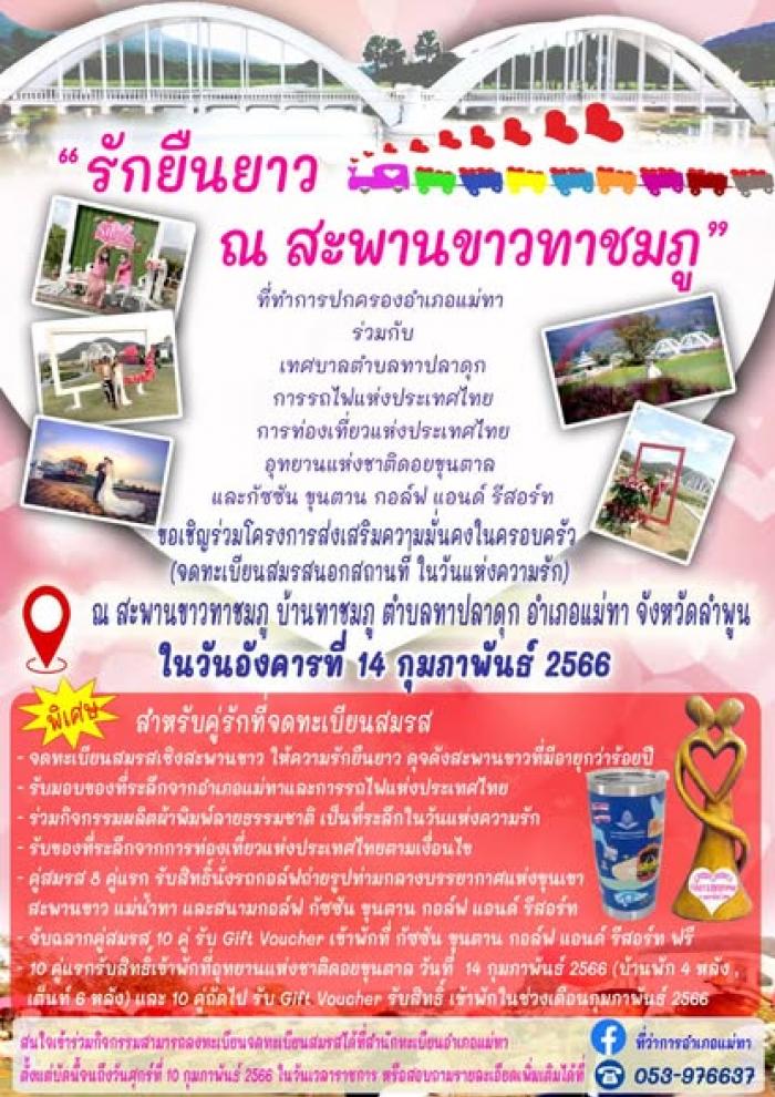 อำเภอแม่ทาจัดกิจกรรมจดทะเบียนสมรสวันแห่งความรัก @สะพานขาวทาชมภู